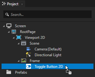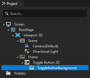 1. In the Project press Alt and right-click the node where you want to create the toggle button and select Toggle Button 2D.