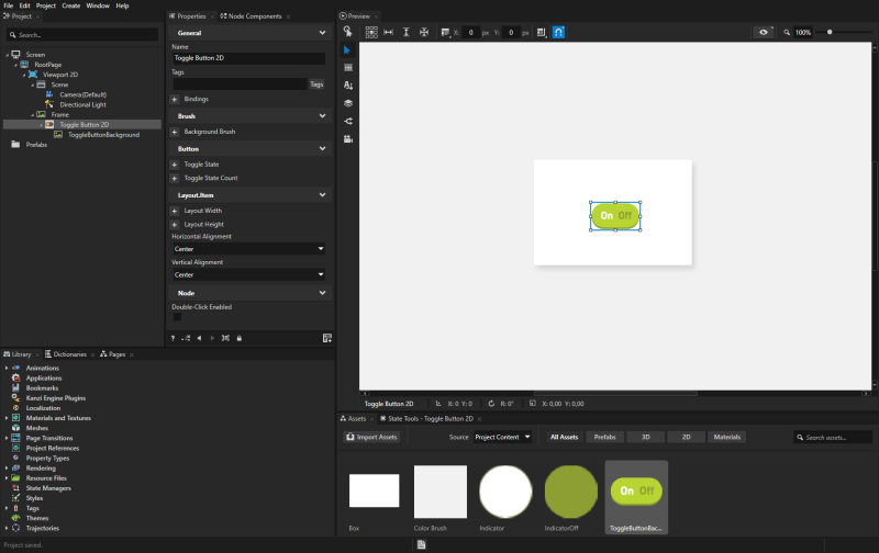 1. In the Project select the Toggle Button 2D node and in the State Tools click Create State Manager.
