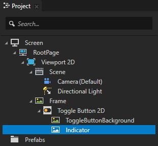 1. From the Assets window drag the Indicator image to the Toggle Button 2D node in the Project.
