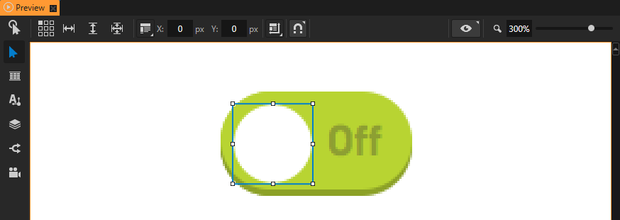 6. In the Preview use the Node tool to position the toggle button indicator over the On part of the ToggleButtonBackground node.