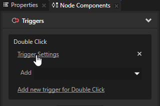 In the Project select the node to which you want to add the trigger, and in the Node Components > Triggers section add the Double Click trigger.