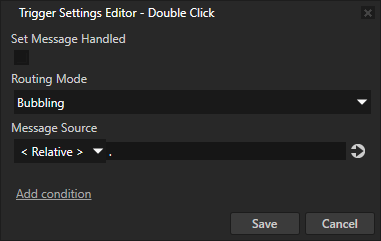 Use the Double Click trigger to react to the double-click gesture. For example, you can change the appearance of a node when the user double-clicks or double-taps that node.