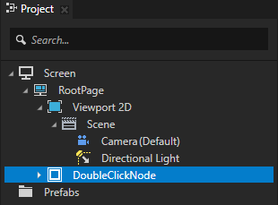 In the Project create a node for which you want to enable the double-click gesture. For example, create an Empty Node 2D node, name it DoubleClickNode, and add content to the node.