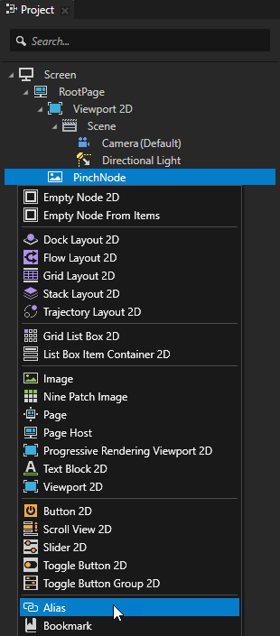 4. In the Project press Alt and right-click the node you created and select Alias.