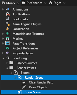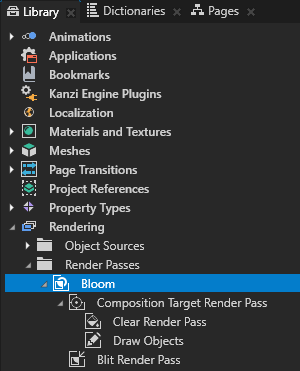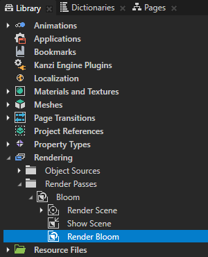 - In the Library > Rendering > Render Passes > Bloom create a Group Render Pass and name it Render Bloom.