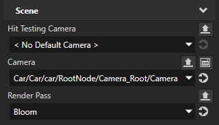 - In the Project select the RootPage > Car > car node and in the Properties set the Render Pass property to Bloom.