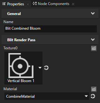 You use this render pass to draw the Vertical Bloom 1 render pass to the screen using the CombineMaterial.