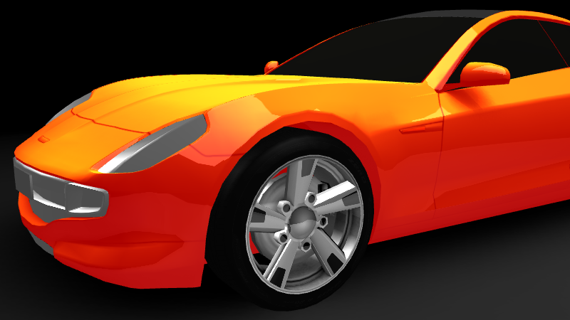 In this step you create textures and define the materials for the tires and rims, and you define the properties to create the chrome effect for the chrome parts.