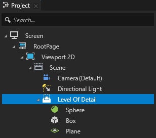 - In the Project press Alt and right-click the Scene node that you set up and select Level of Detail.