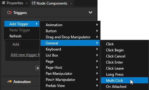2. In the Node Components > Triggers section add the Multi Click trigger.