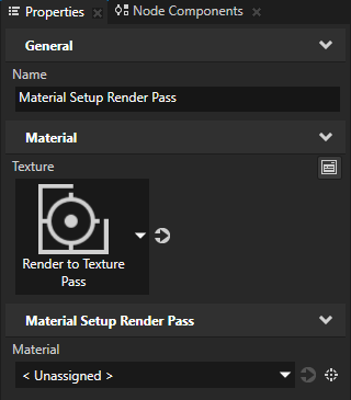 For example, in the Group Render Pass that you created in the first step of this procedure, create a Material Setup Render Pass, in the Properties add the Texture property, and set it to the Render to Texture Pass that you created.