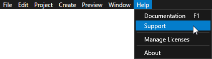 - In the Kanzi Studio main menu select > Support.