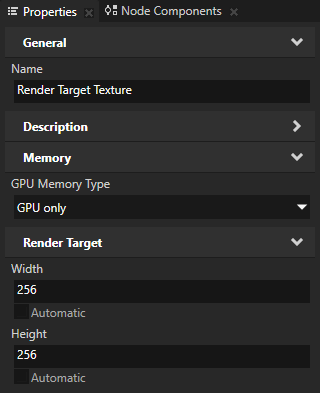 - In the Library > Materials and Textures > Textures select the Render Target Texture texture and in the Properties set: