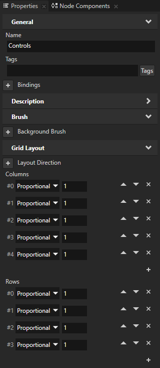 In this section you make the content of the Controls Grid Layout 2D node respond to the changes of the device screen orientation and resolution. That way the controls in the user interface change with changes of the screen resolution.