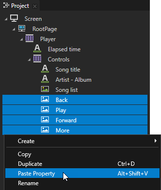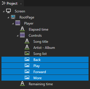 This binding sets the height of the Play Image node based on the height of the RootPage node. With this binding the size of the Play node changes differently from the other nodes in the Controls node.