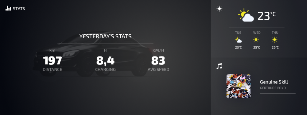 The Stats project contains a car statistics application. You place it in the main part of the final Kanzi application.