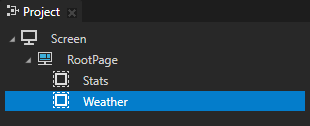 - In the Project select the RootPage node, create a Prefab Placeholder 2D node, name it Weather, and in the Properties add and set: