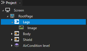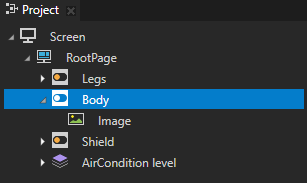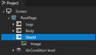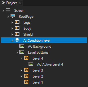 - A Stack Layout 2D node named AirCondition level contains the background image of the application user interface and an image node which contains: