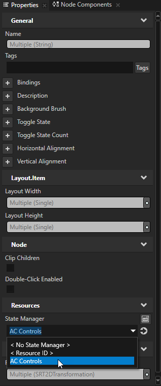 - In the Library > State Managers > AC Controls select the Level state group, and in the Properties set the Controller Property to Statemanagers.Level.