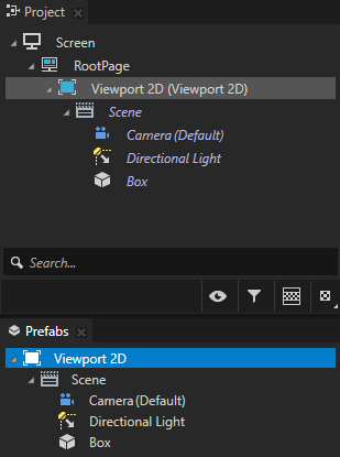 For example, if you use a Prefab View 2D node to instantiate a prefab which contains a Button 2D node, when Kanzi instantiates the prefab, it adds the root node of the Button 2D node as a child node of the Prefab View 2D node.