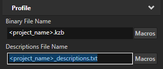 Kanzi Studio by default names the descriptions file <project_name>_descriptions.txt. You can set the name of the file in the Project > Properties using the Descriptions File Name property.
