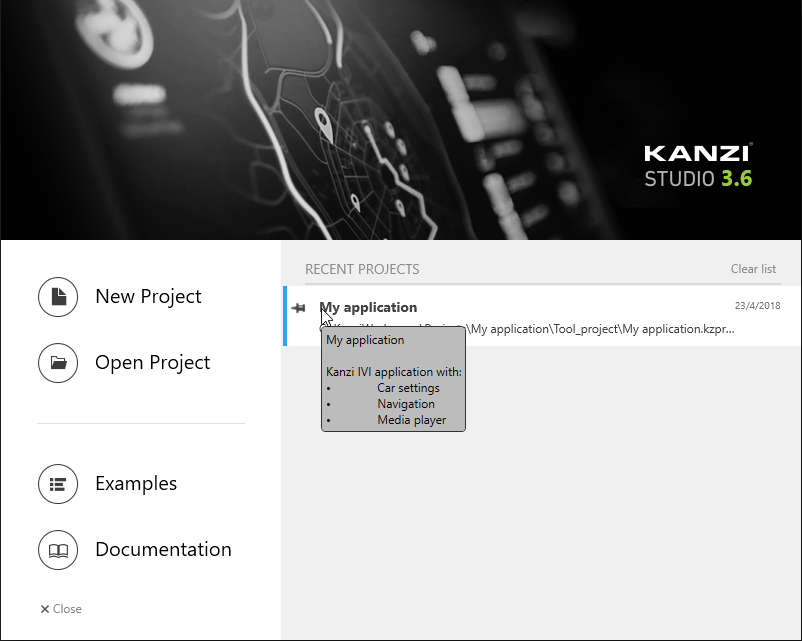 You can see this description in the Kanzi Studio Quick Start window when you hover over the project name.