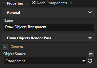 - Draw Objects Render Pass named Draw Objects Transparent renders the nodes picked by the Transparent filter.