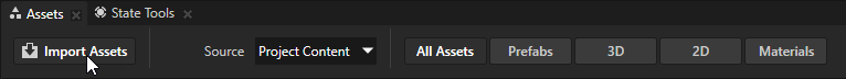 - In the Assets window located in the bottom part of the Kanzi Studio window click Import Assets.