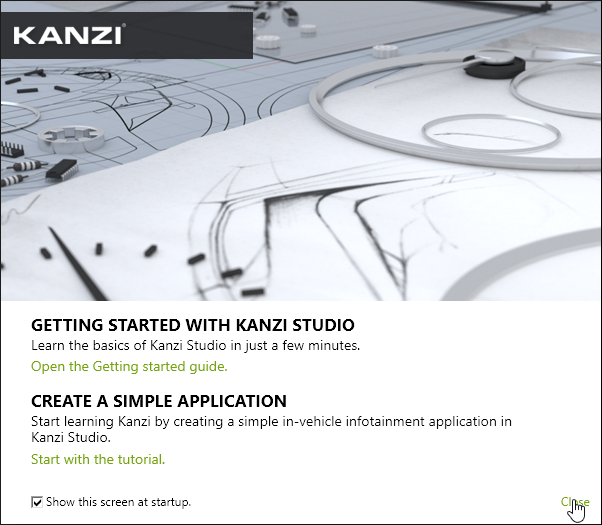 TIPTo set whether you want to show the Welcome and Quick Start screens when you start Kanzi Studio, in the main menu select > User Preferences and set your preference.