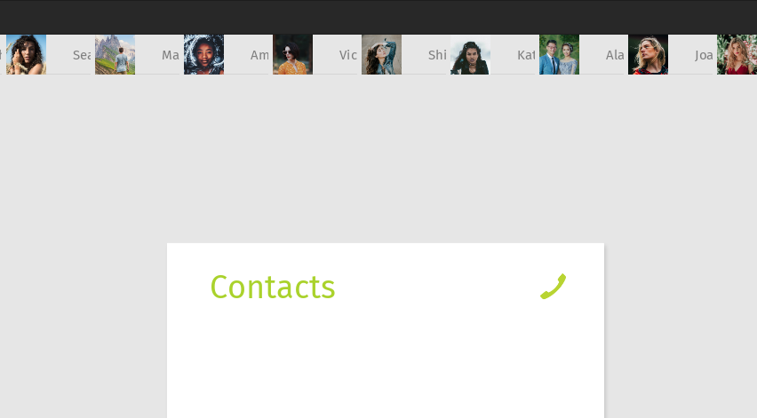 The ContactsList node now receives the photos and names for the contact items from the ContactsList.xml using the XML data source data source. In the Preview you can see the contact data.