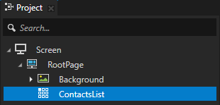 - In the Project press Alt and right-click the RootPage node, select Grid List Box 2D, and name it ContactsList.