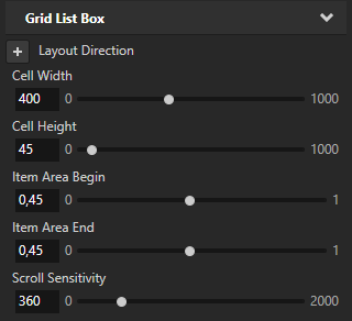 In this section you define how the Grid List Box scrolls its items and set the selected item to move to the center of the Grid List Box area.