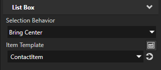 - In the Project select the ContactsList node and in the Properties set the list box to scroll the selected item to the center of the node area:
