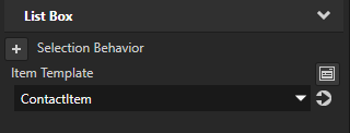 - In the Project select the ContactsList node and in the Properties set the Item Template property to ContactItem.
