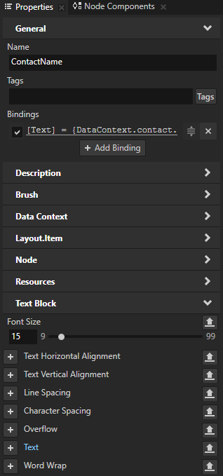 To define the layout for the list box content, in the Project select the ContactsList node and in the Properties set: