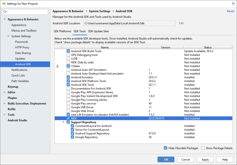 Installing the Kanzi build environment for Android