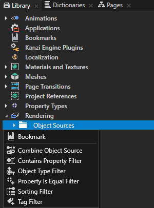 These filters are available in Kanzi Studio in the Library > Rendering > Object Sources:
