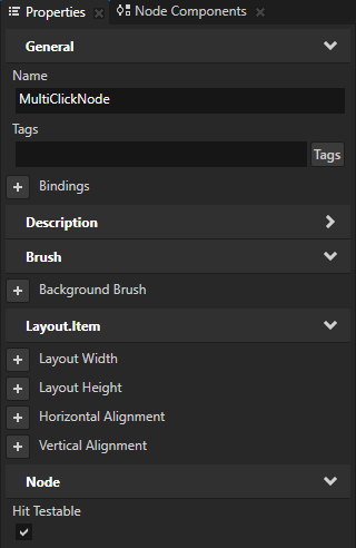 3. In the Project select the node you created in the previous step, in the Properties add the Hit Testable property, and set it to enabled.