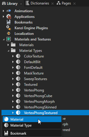 - In the Library press Alt and right-click Materials and Textures, select , and in the Properties set the Material Type property to the material type you want to use for this material.
