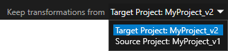 3. Select the checkboxes next to the items you want to merge from the source to target. Depending on the existence of the selected item in the target project, the name of the item is written using: