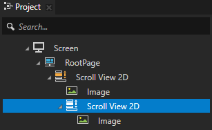 1. In the Project press Alt and right-click the node where you want to create a Scroll View node and select either Scroll View 3D, or Scroll View 2D.