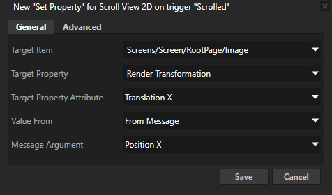 // Create the Scroll View which uses the ScrollView2D.Scrolled message handler.
