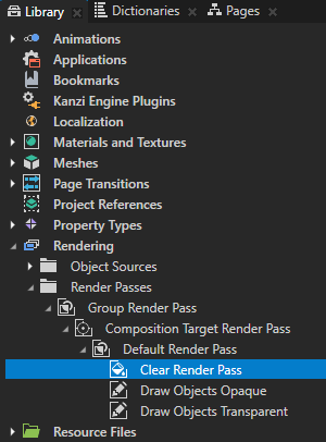 Default Render Pass creates a basic set of render passes that first render opaque nodes and then transparent nodes.