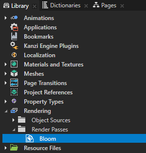 2. In the Library > Rendering press Alt and right-click Render Passes, select Group Render Pass, and name it Bloom.