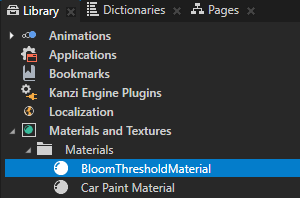 Kanzi Studio adds the BloomThreshold material type and creates the BloomThresholdMaterial material which supports rendering only the regions which are brighter than a specific threshold value.