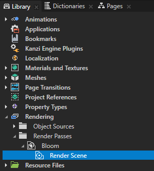 4. In the Library > Rendering > Render Passes > Bloom > Render Scene create a Default Render Pass.