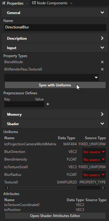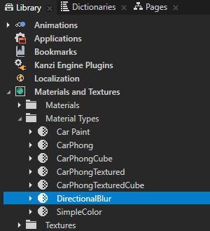 In this section you first create a material type which supports the directional Gaussian blur effect, then you create a material you can use to apply the effect to 3D content.