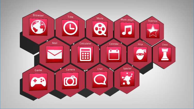 }When you run your application you can see instantiated and arranged Widget Item Prefab prefabs in the Widget Grid List Box node. Each widget in the Widget Grid List Box node has a name and an icon and you can scroll the list box horizontally. In the next step of this tutorial you implement the events that take place when the user selects a widget from the Widget Grid List Box.