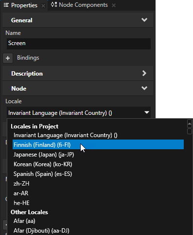 Kanzi uses locale as an ID to select the resources associated with a language and location. If you do not define the resources for a locale, Kanzi uses the resources set in the default locale.