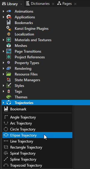 1. In the Library right-click Trajectories and select Create > Ellipse Trajectory.